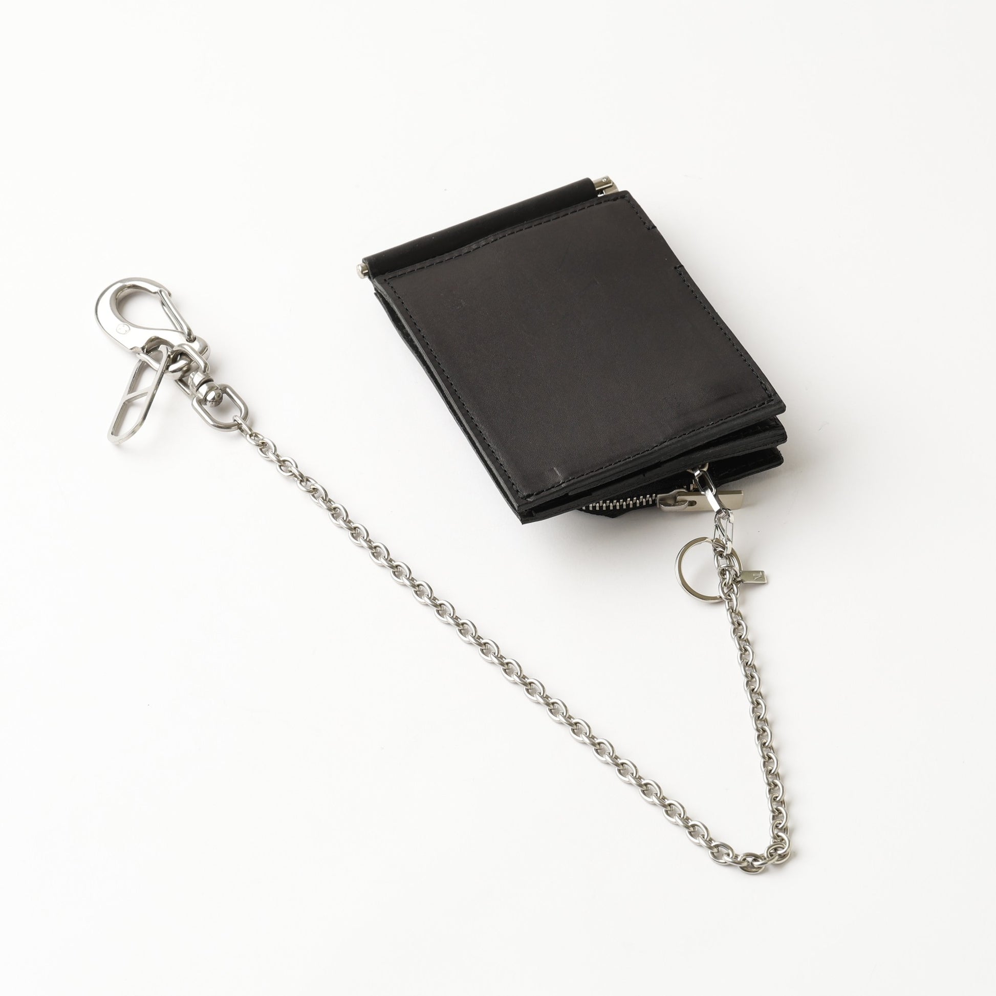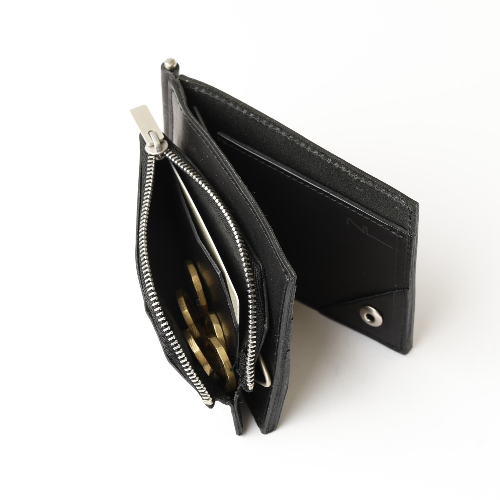 開いた中央には札ばさみを付け、三角カンも付属しているのでウォレットコードなども取り付け可能。