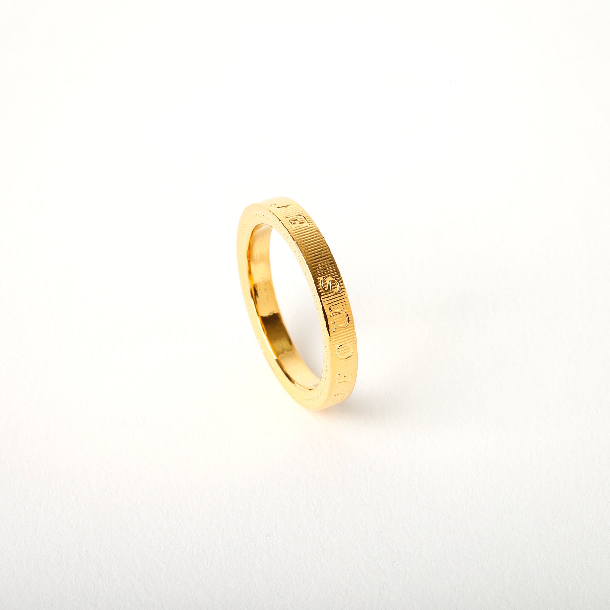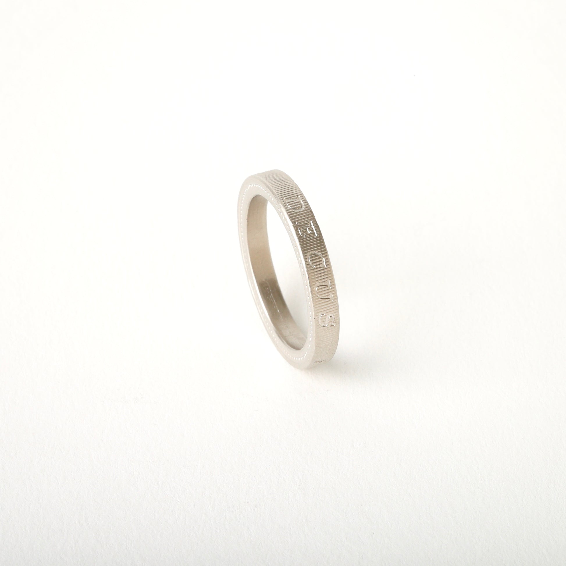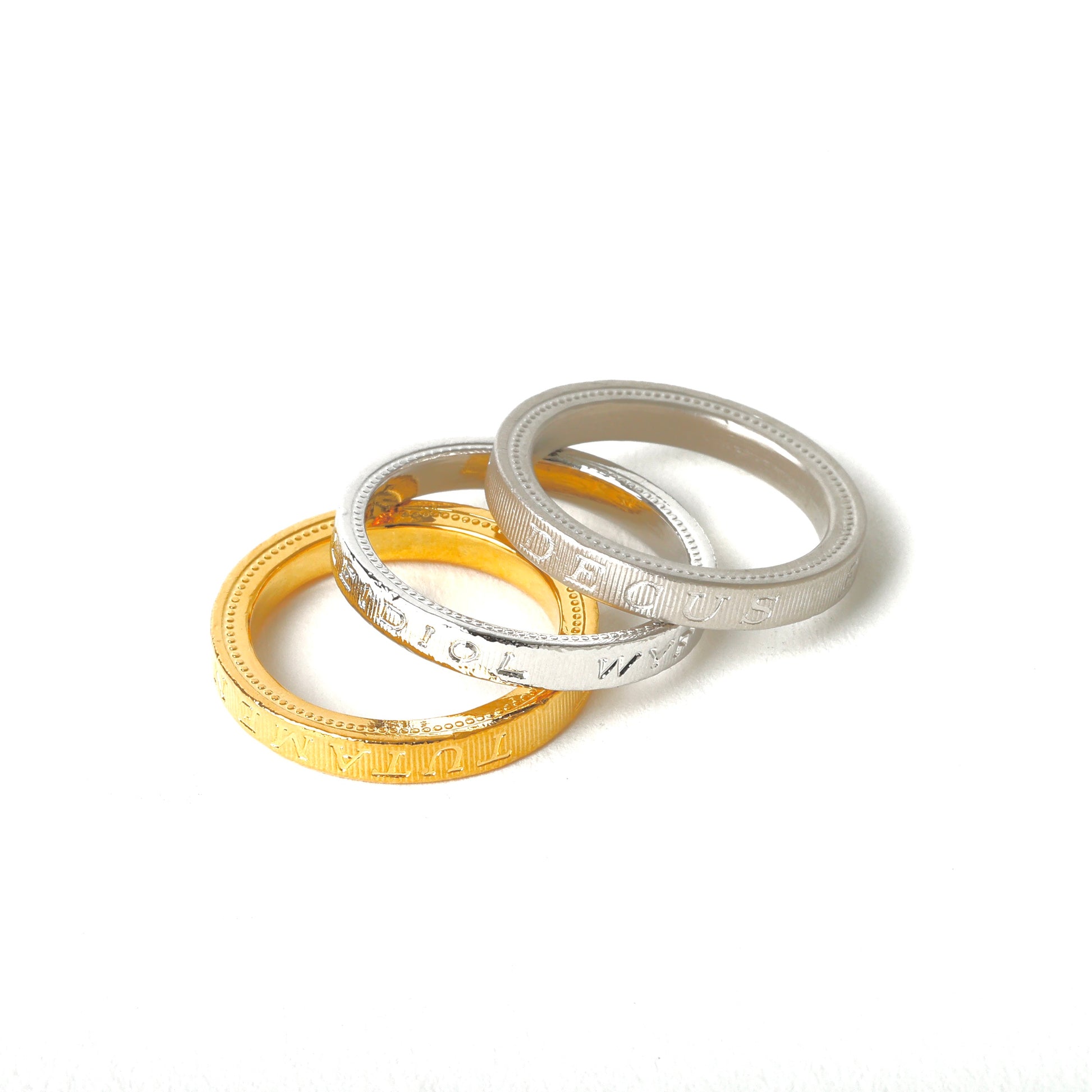 旧イギリス硬貨の1ポンドをリング状にくり抜き、メッキ加工を施したリング。