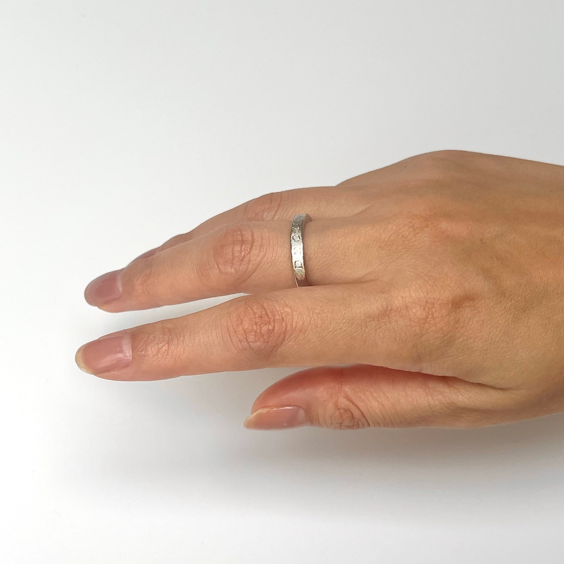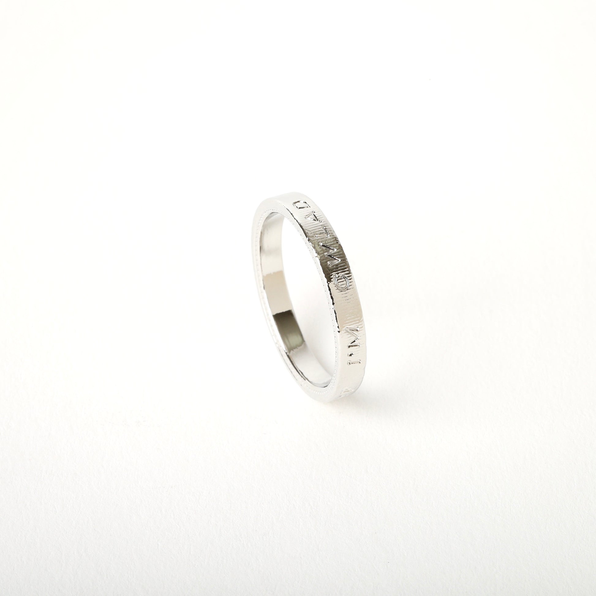 硬貨本来の刻印や柄を活かし、幅と厚みを大きめに設定した、シンプルながら存在感のあるデザイン。