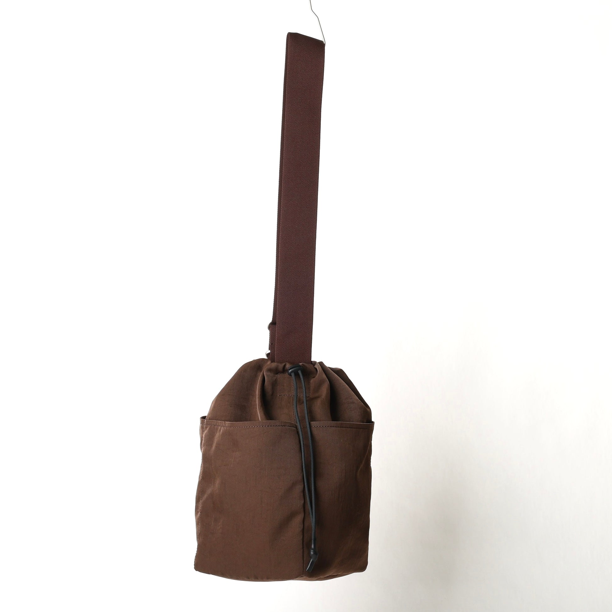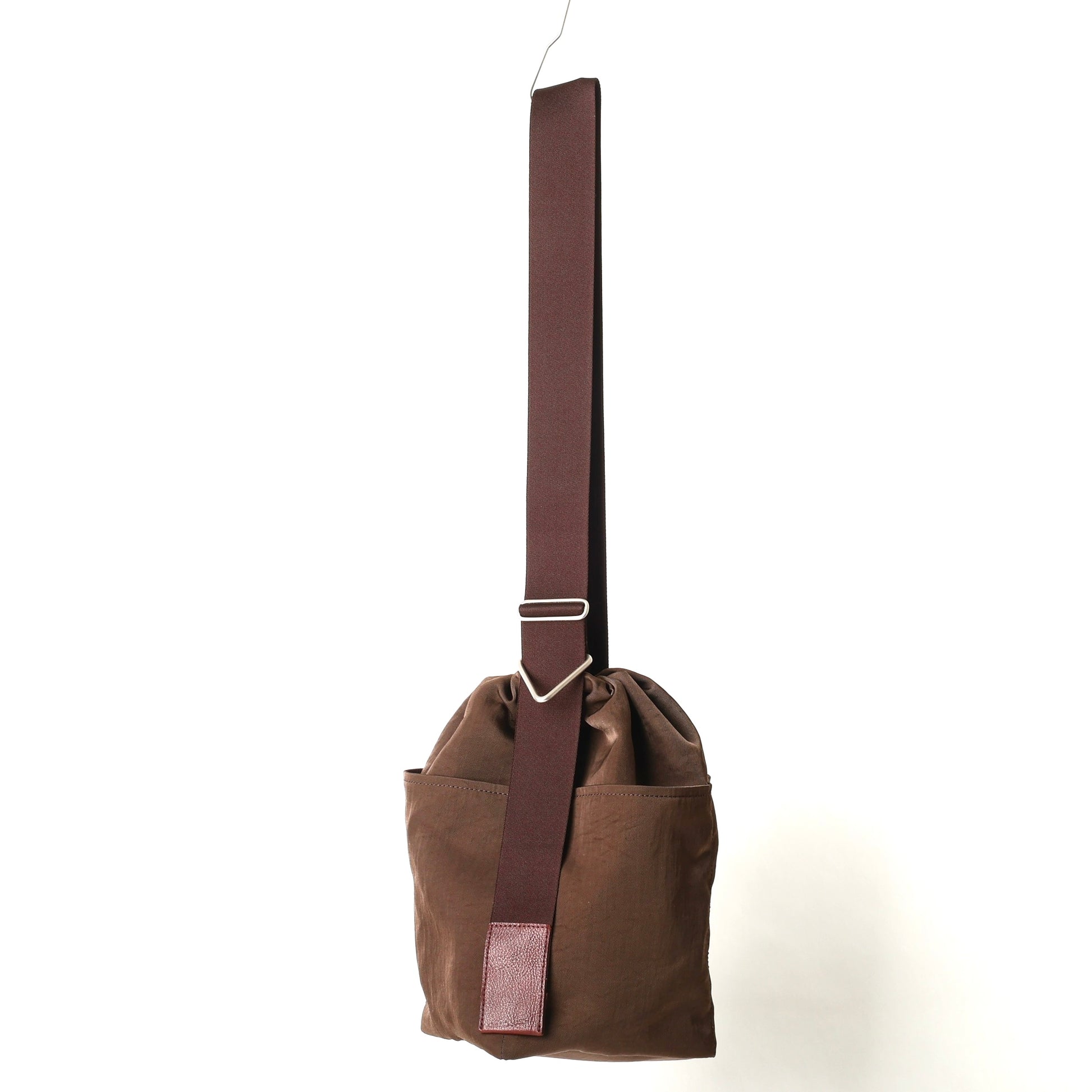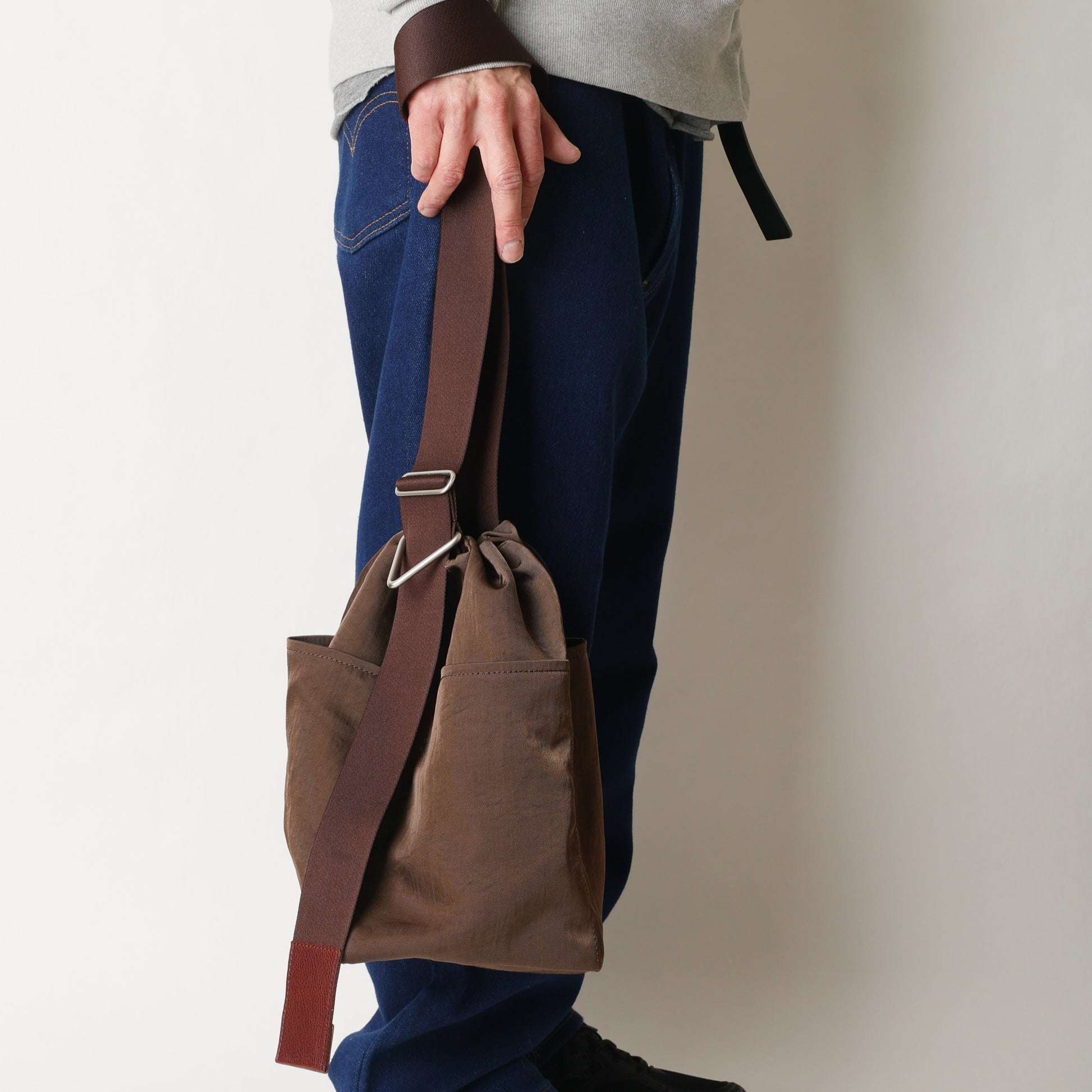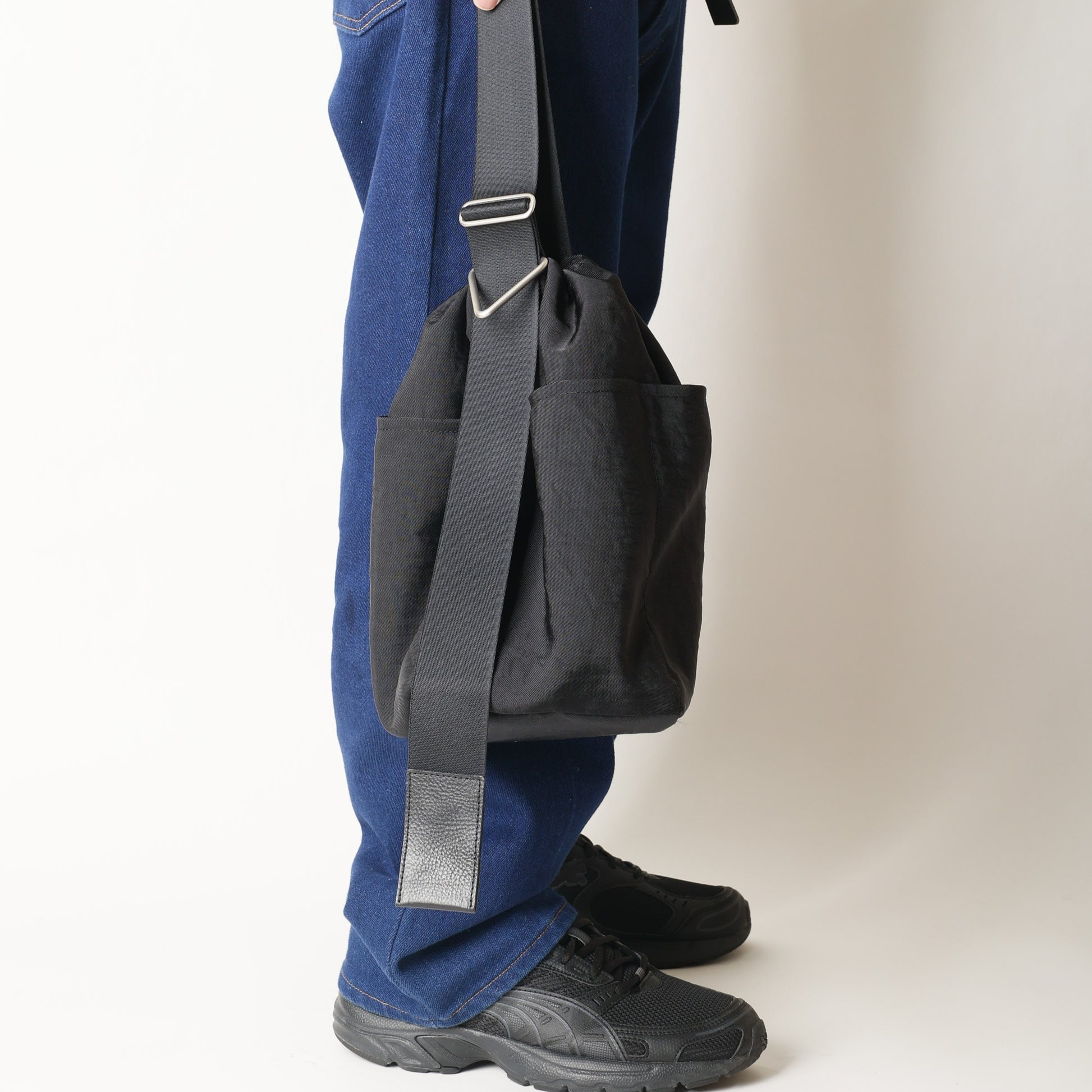 周りを囲うように4つの外部ポケットを配した、巾着型のショルダーバッグ。