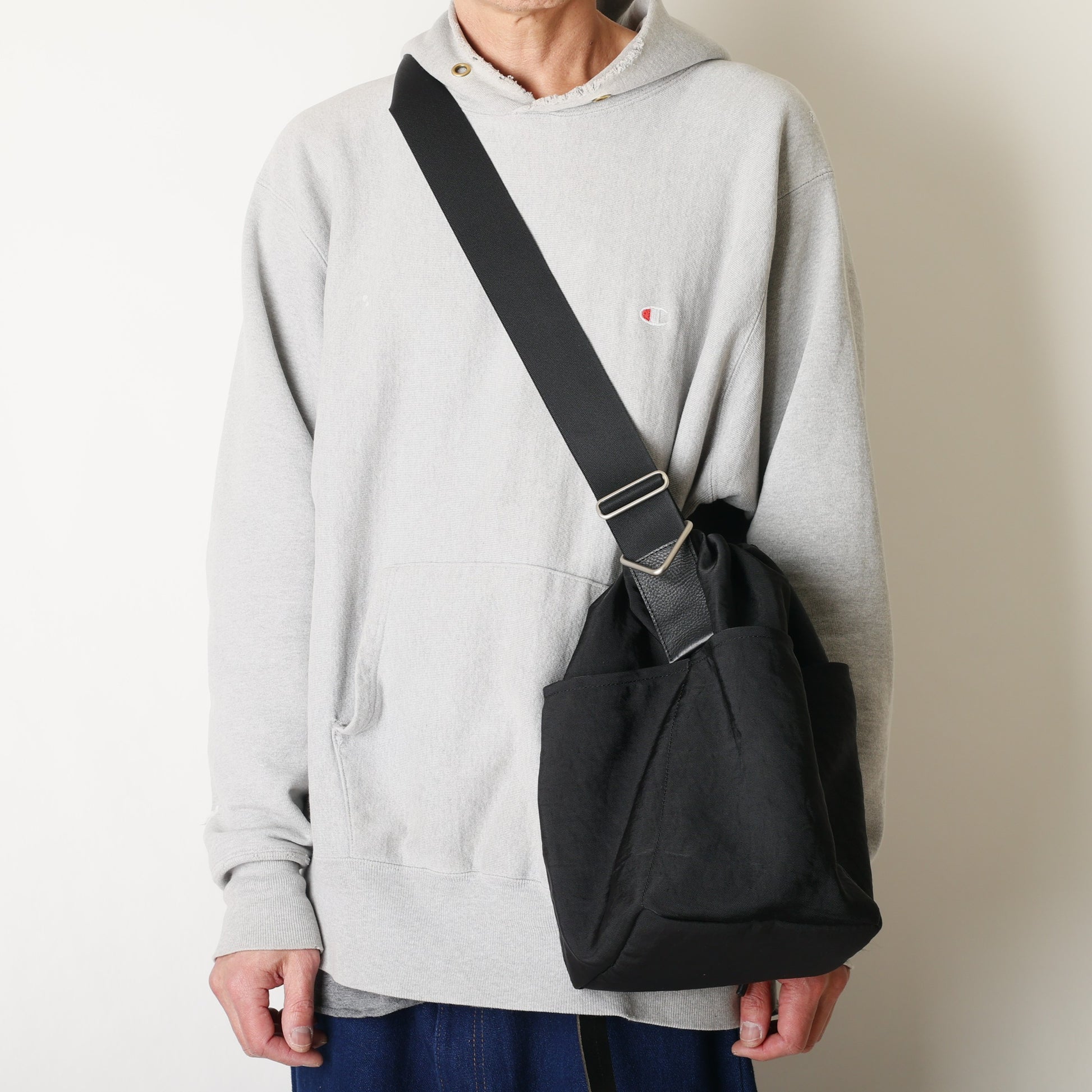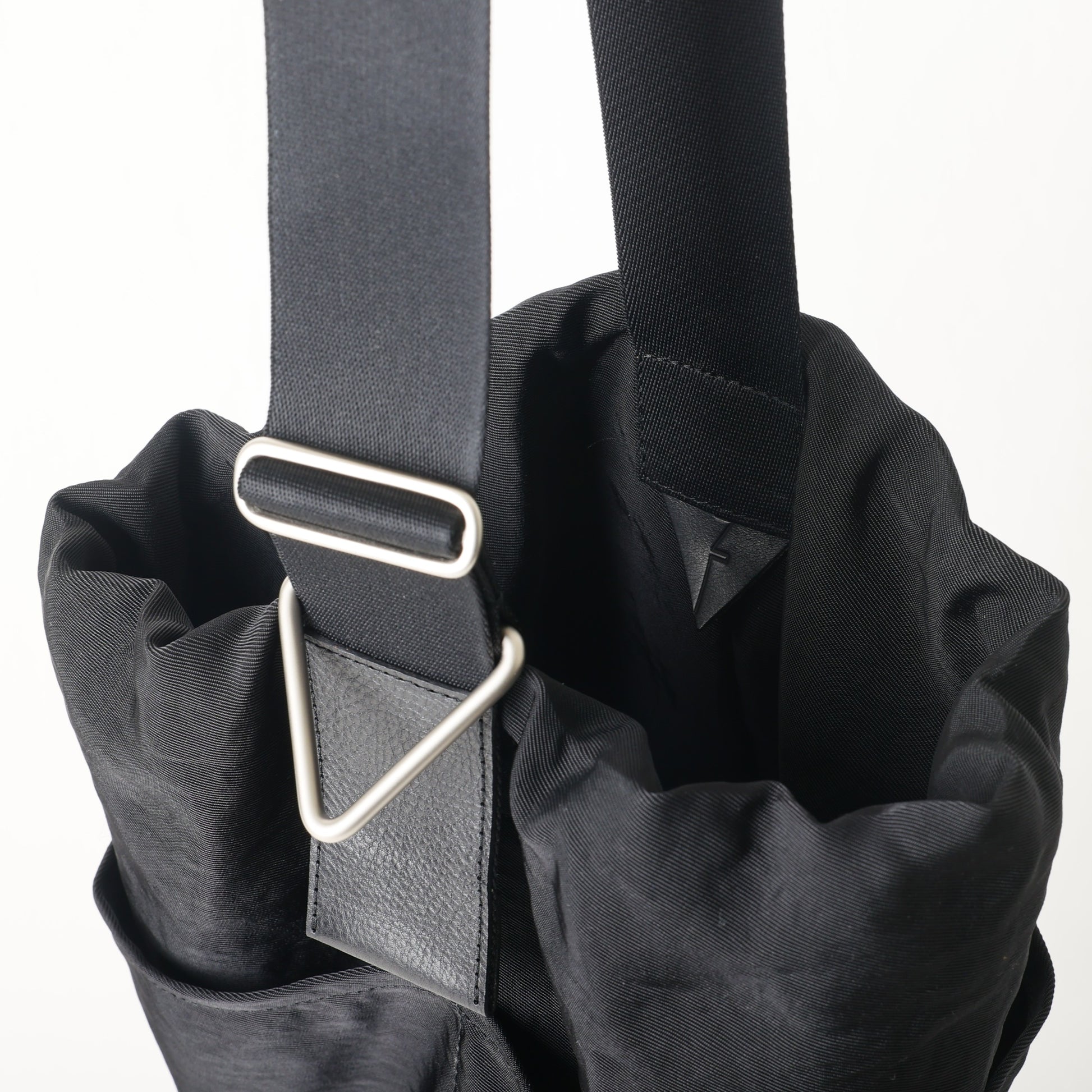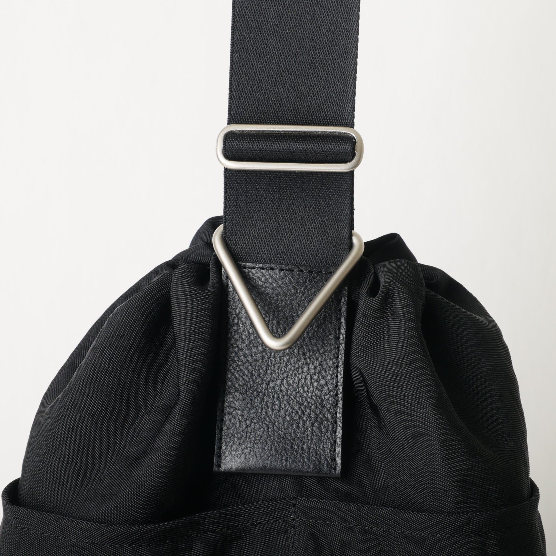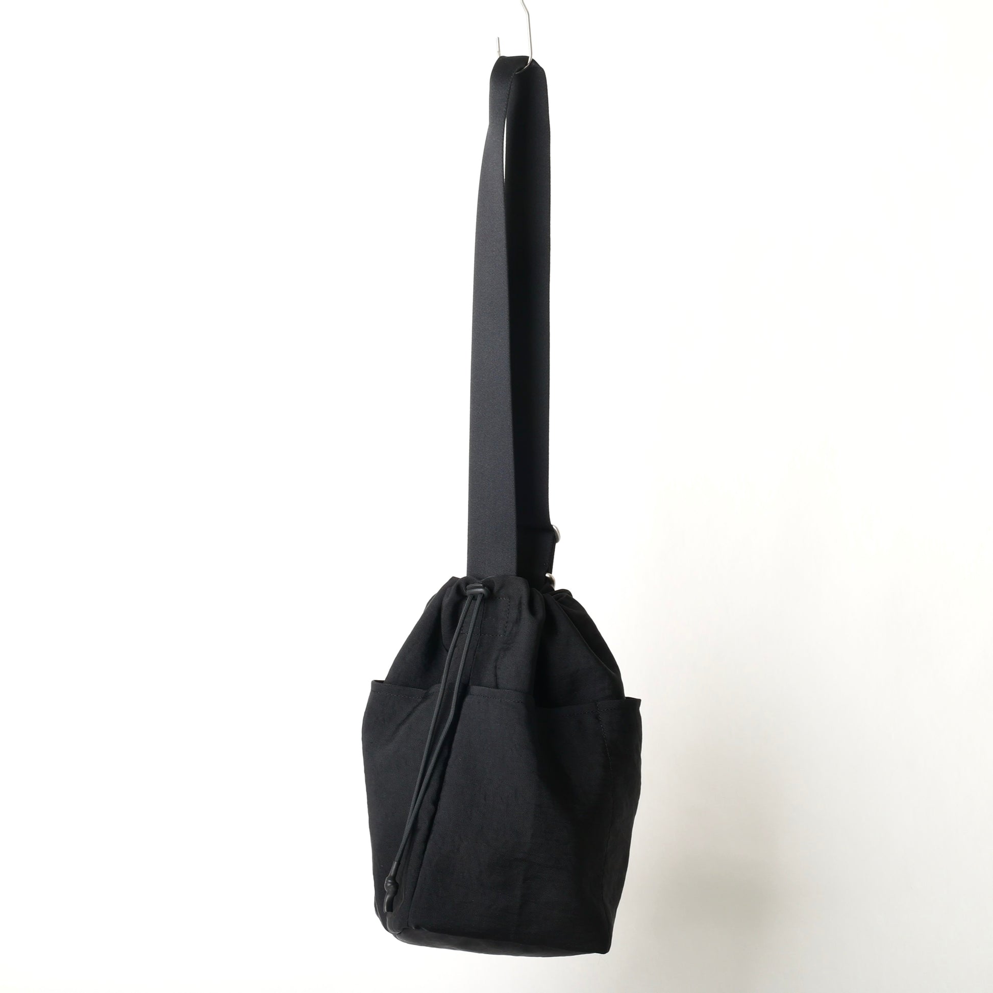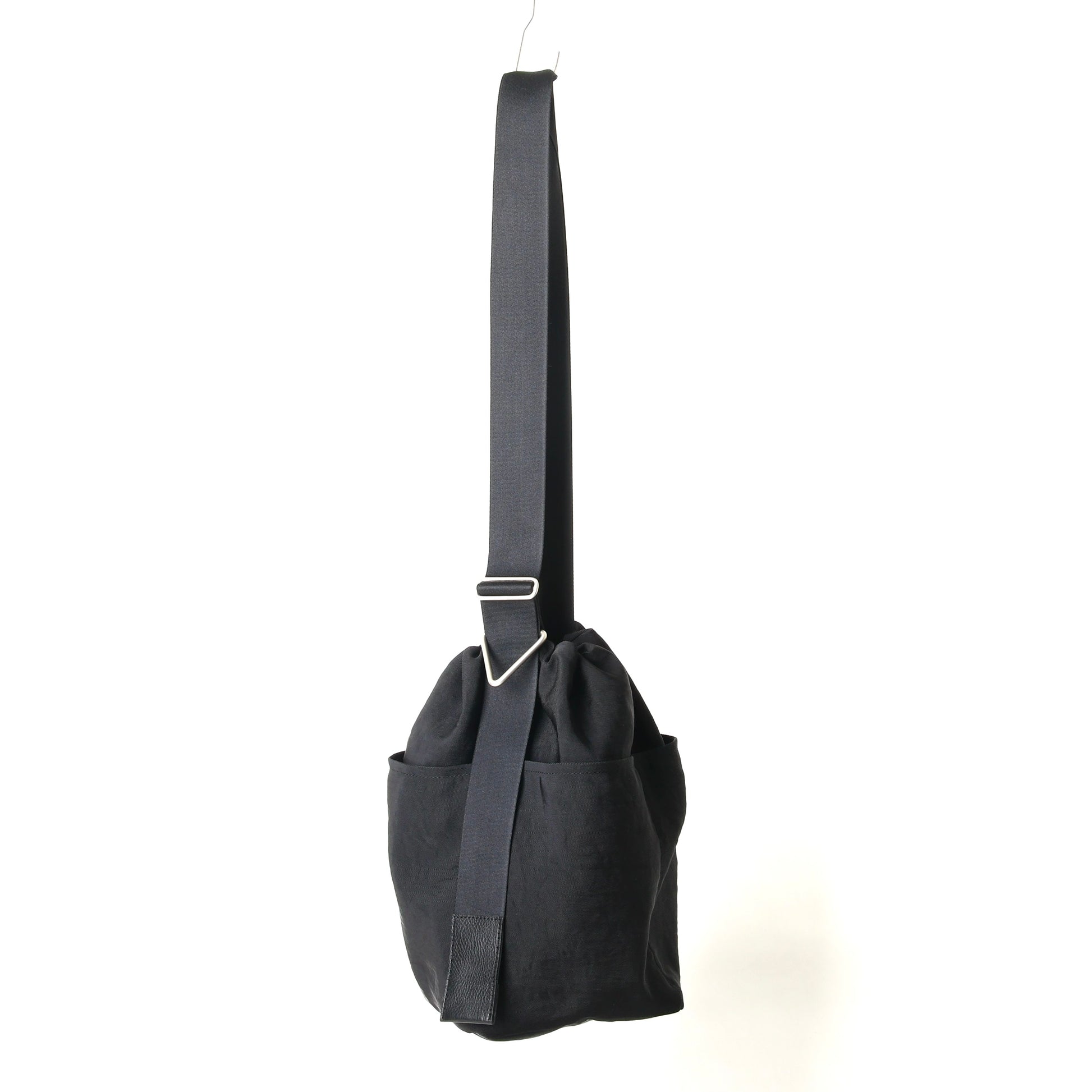 周りを囲うように4つの外部ポケットを配した、巾着型のショルダーバッグ。