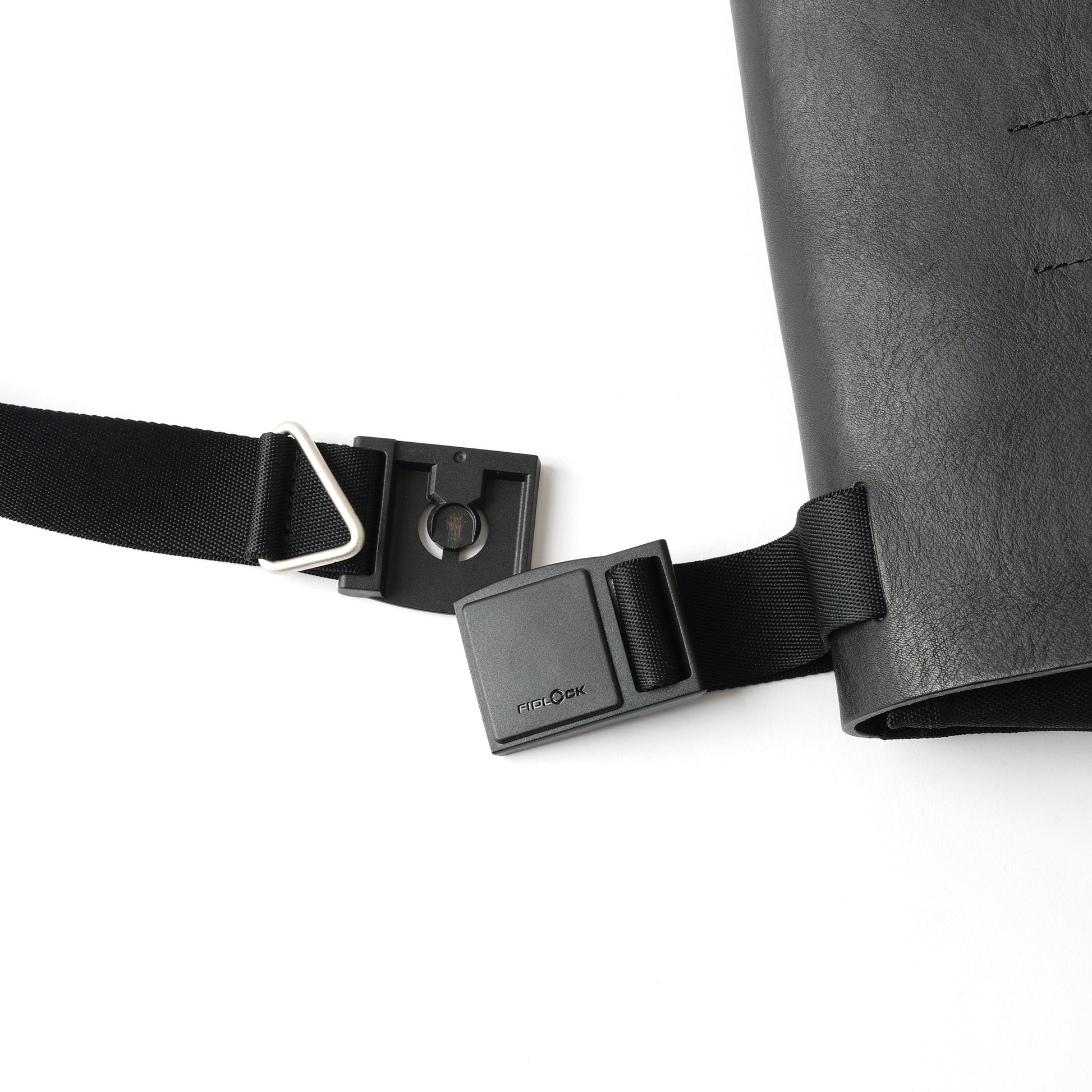 ドイツ製Fidlockのスライド式マグネットをストラップとレザーフラップ部分の2箇所に配置。