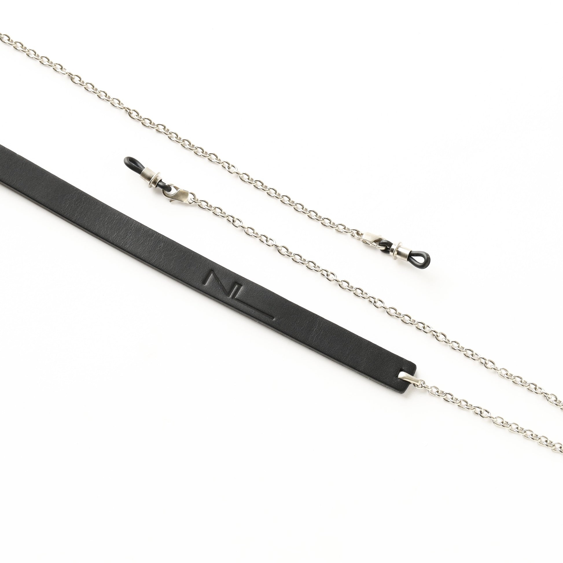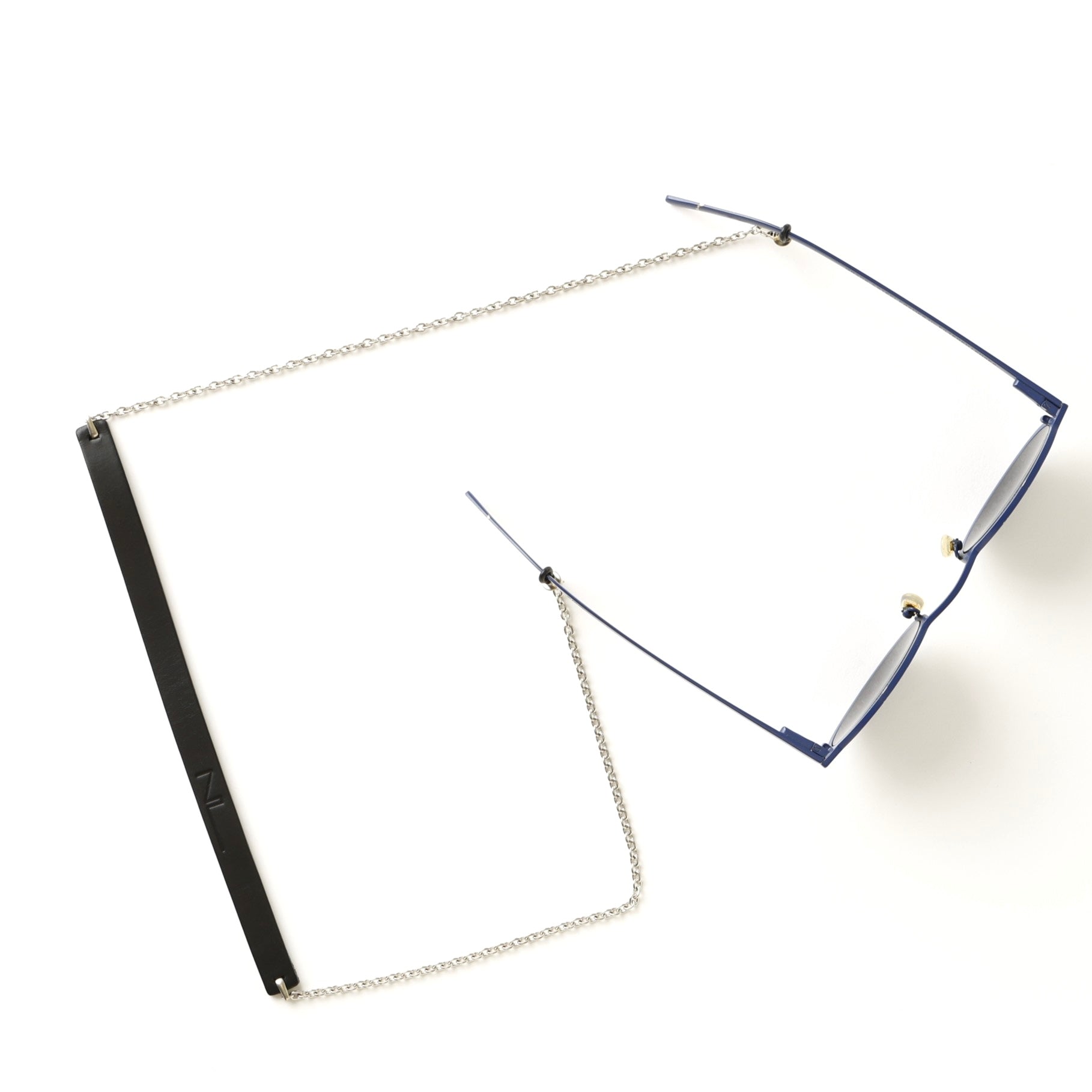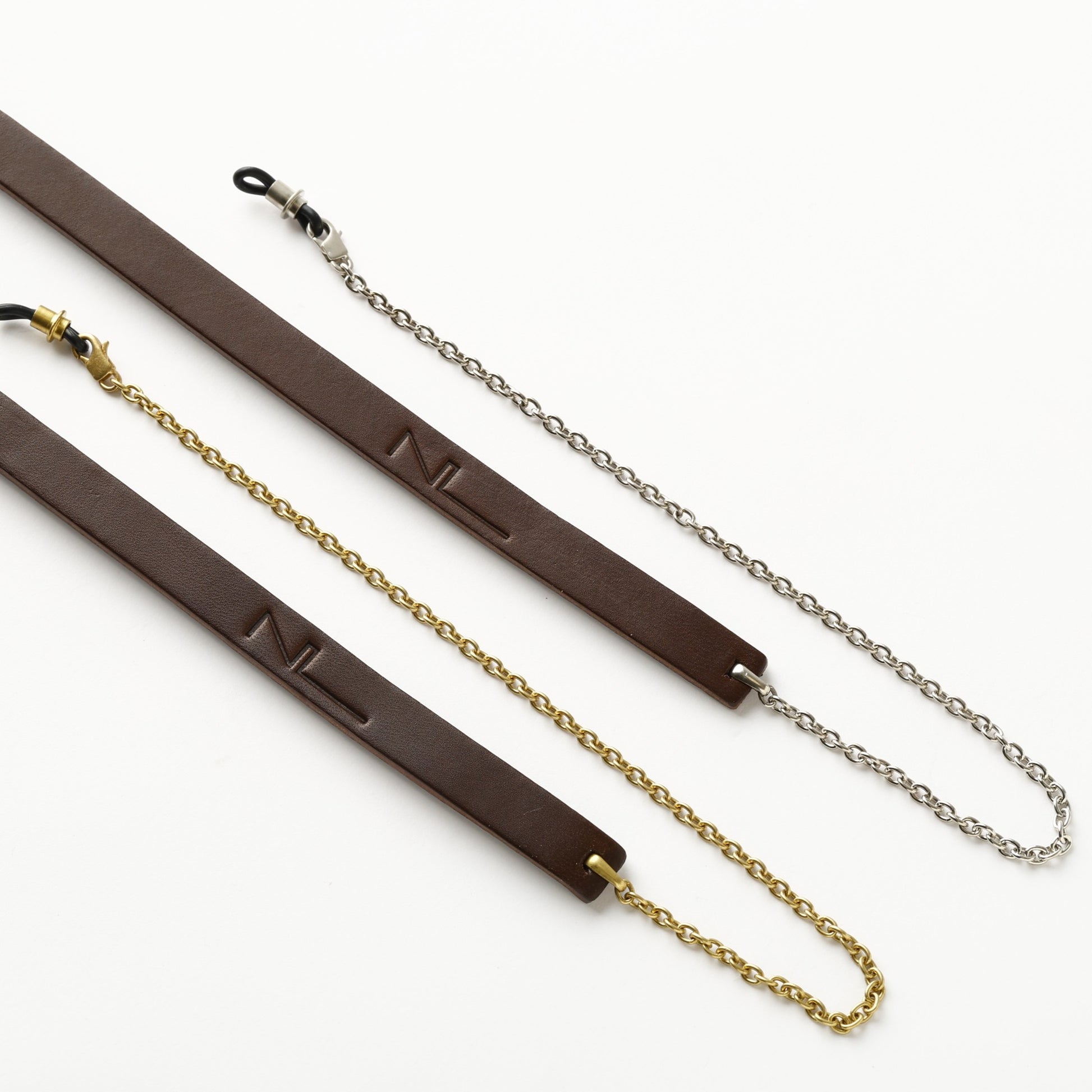 シルバーコーティングされた真鍮に、イタリア製のベジタブルタンニンレザーを組み合わせて作成されたサングラスストラップ。