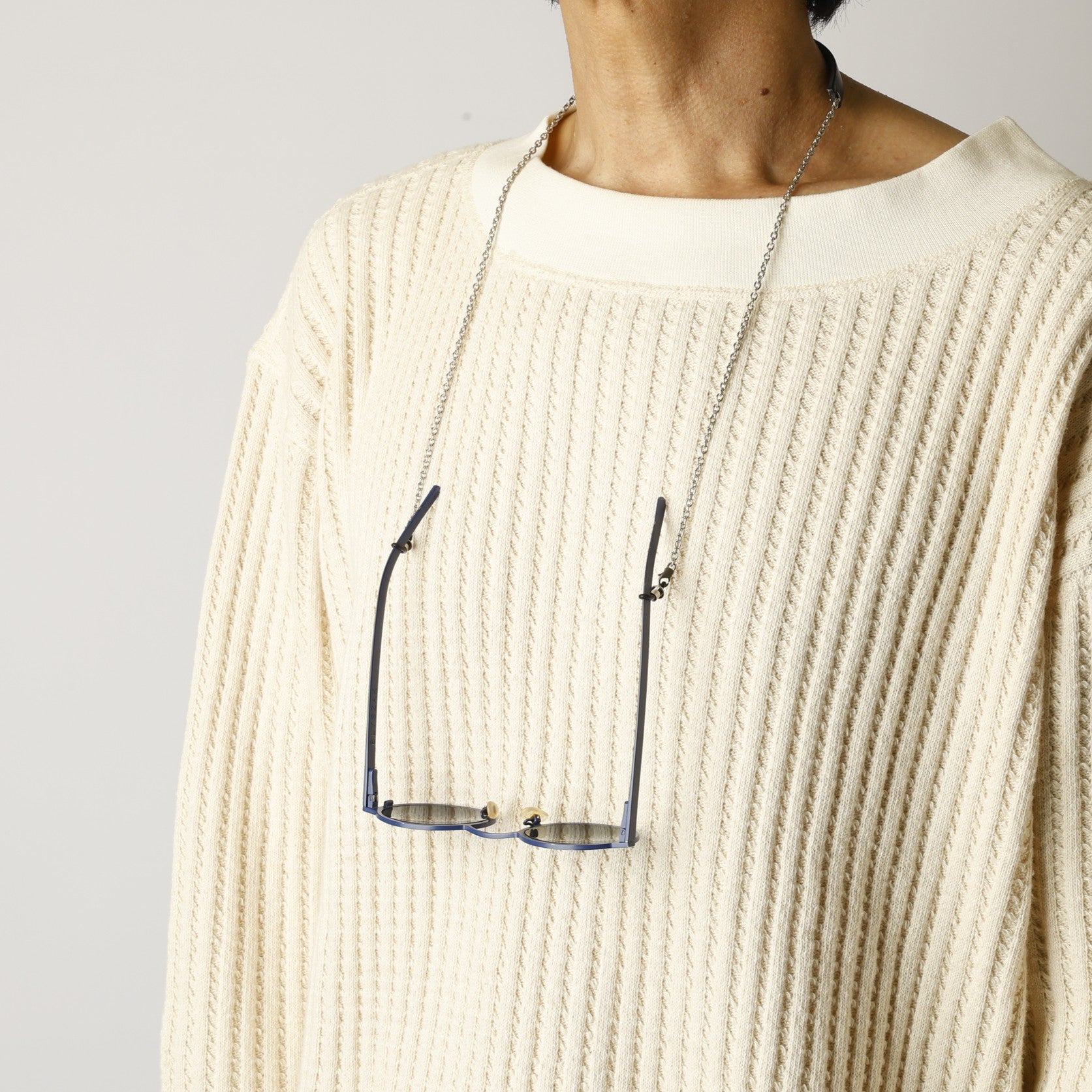 首元に当たる部分にはイタリア製ベジタブルタンニンレザーを使用。チェーンにはメッキ加工を施しています。
