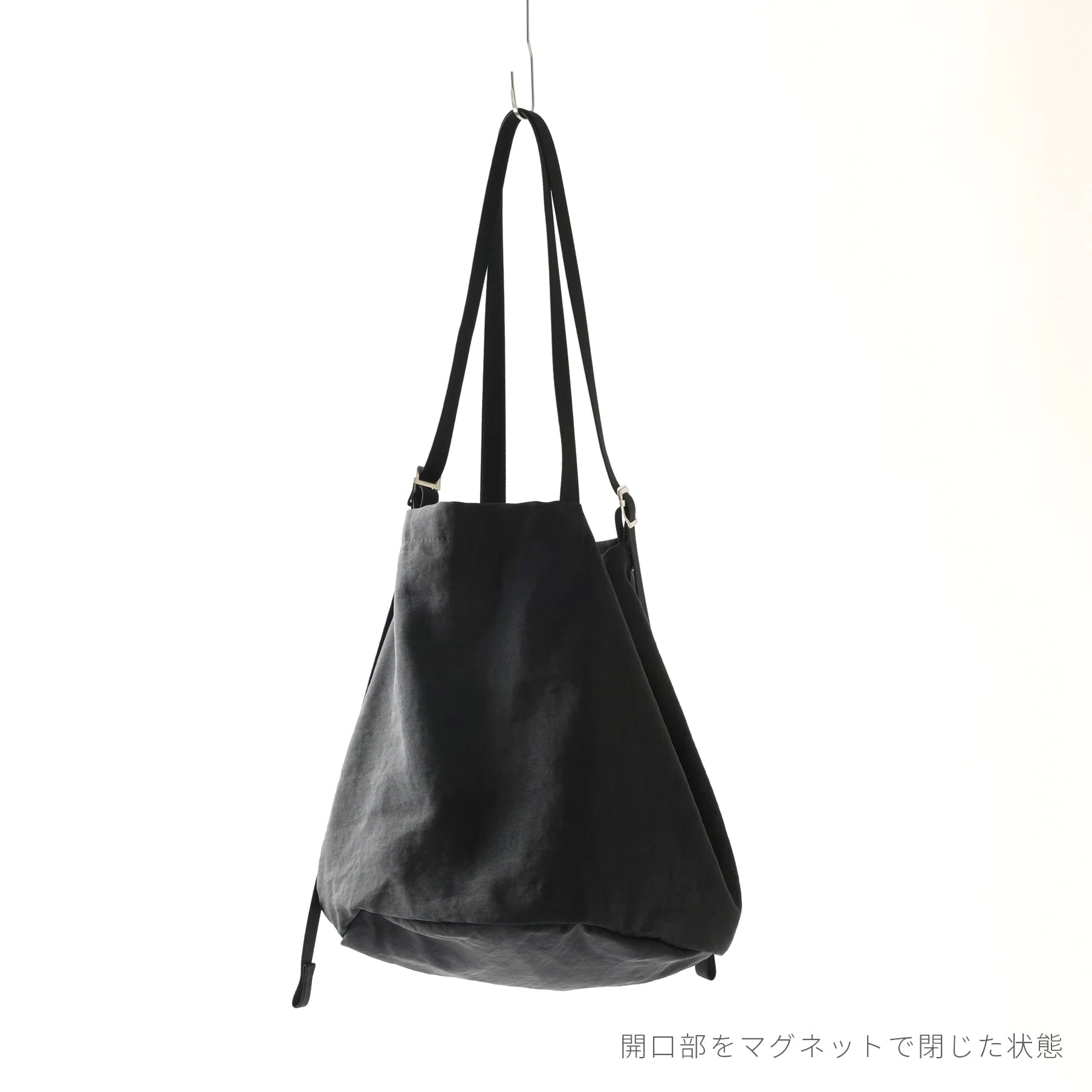 サイドに配されたマグネットの開閉によってシルエットを変えることができ、スタイリングに合わせてご利用いただけます。