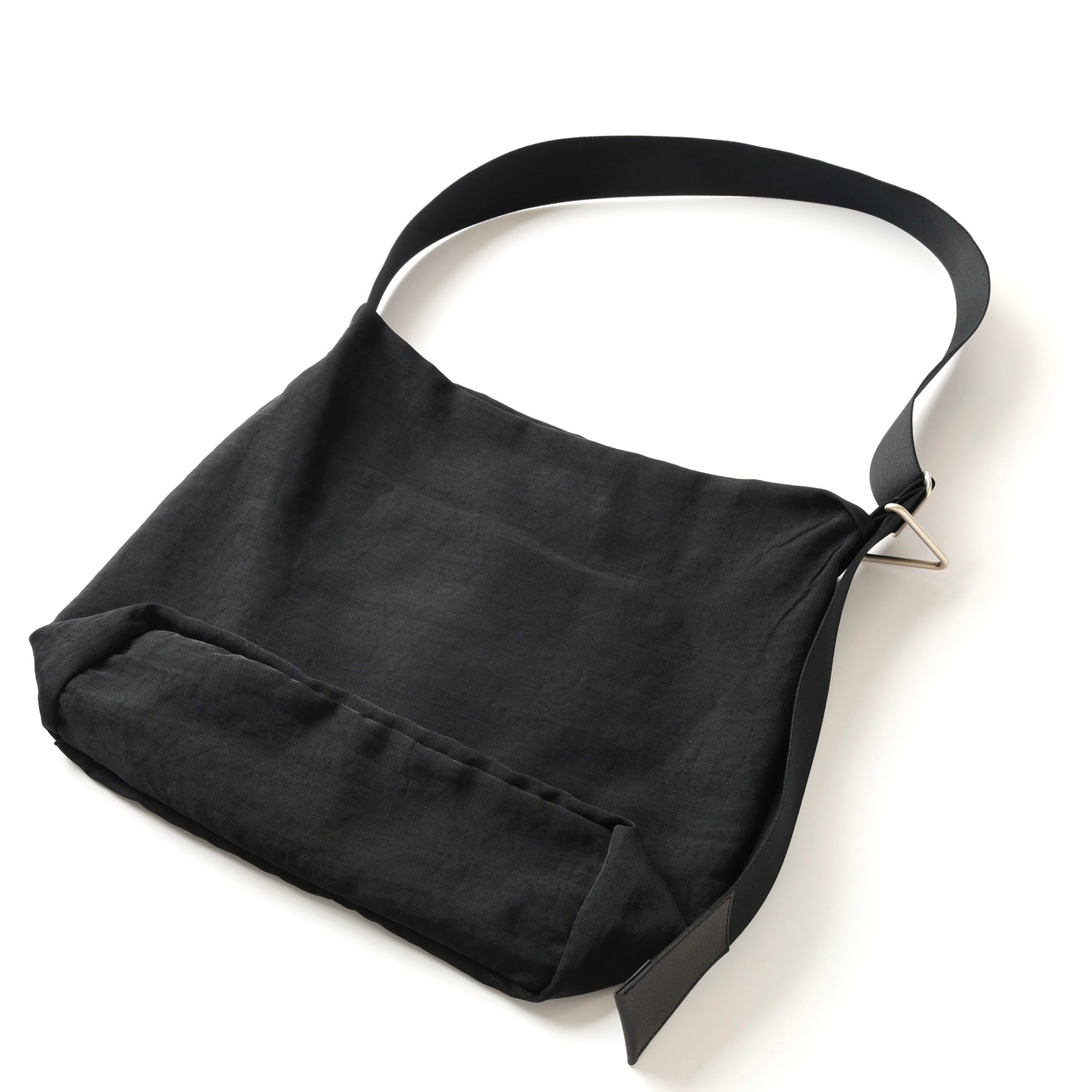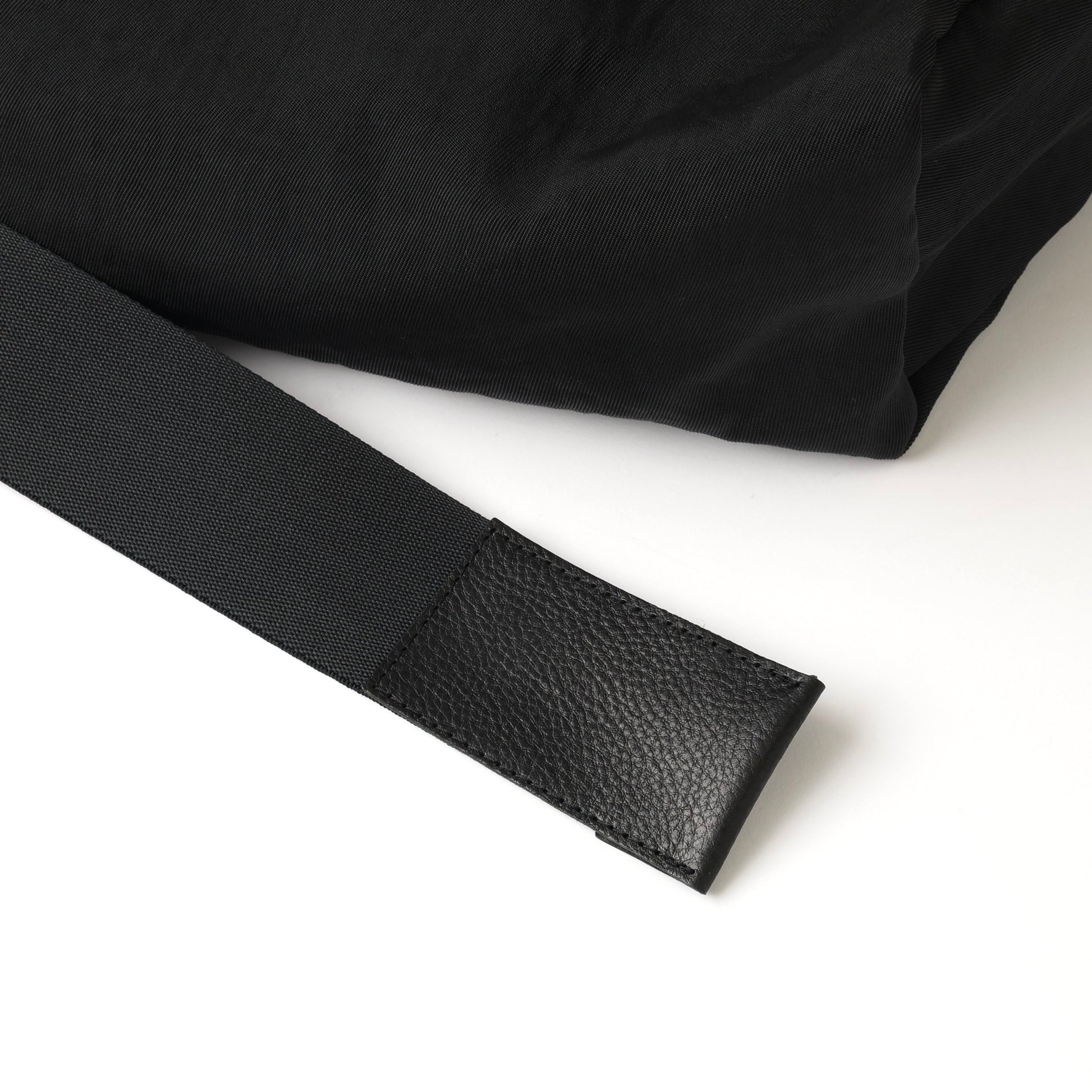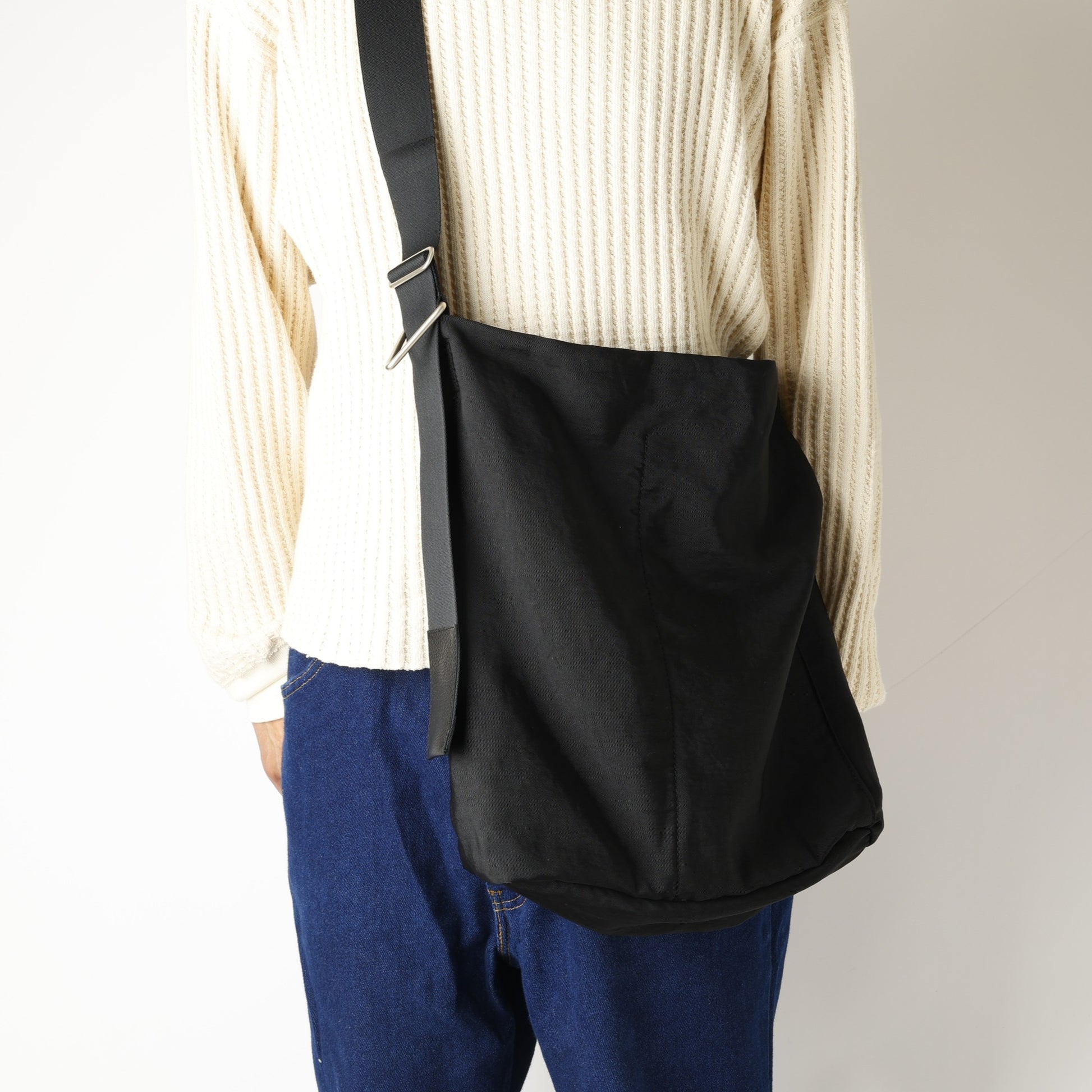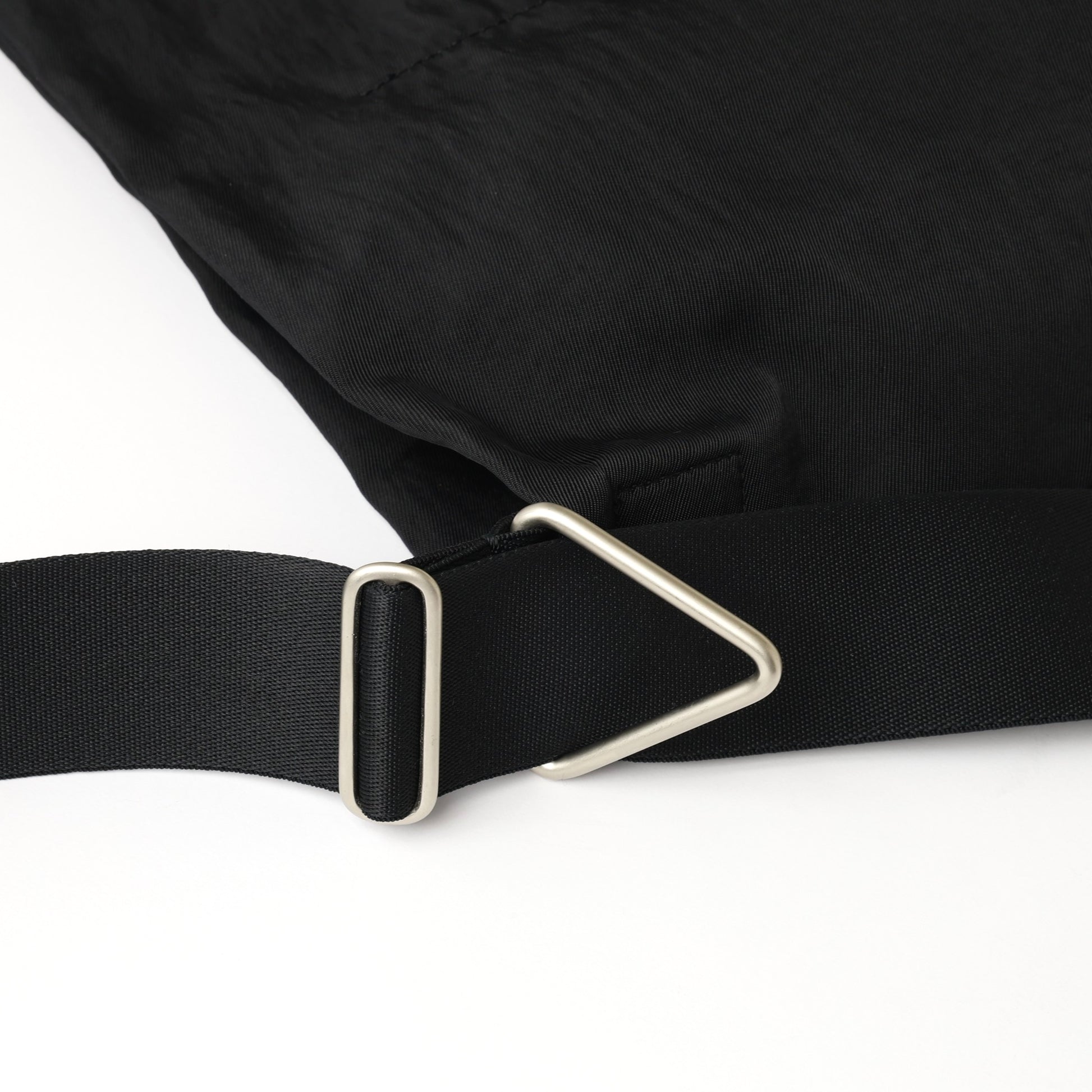 5.0cm幅のショルダーコードの先をシボ感のあるレザーでまとめ、サイドには特大な三角カンを付け、キーホルダー等が収納可能。