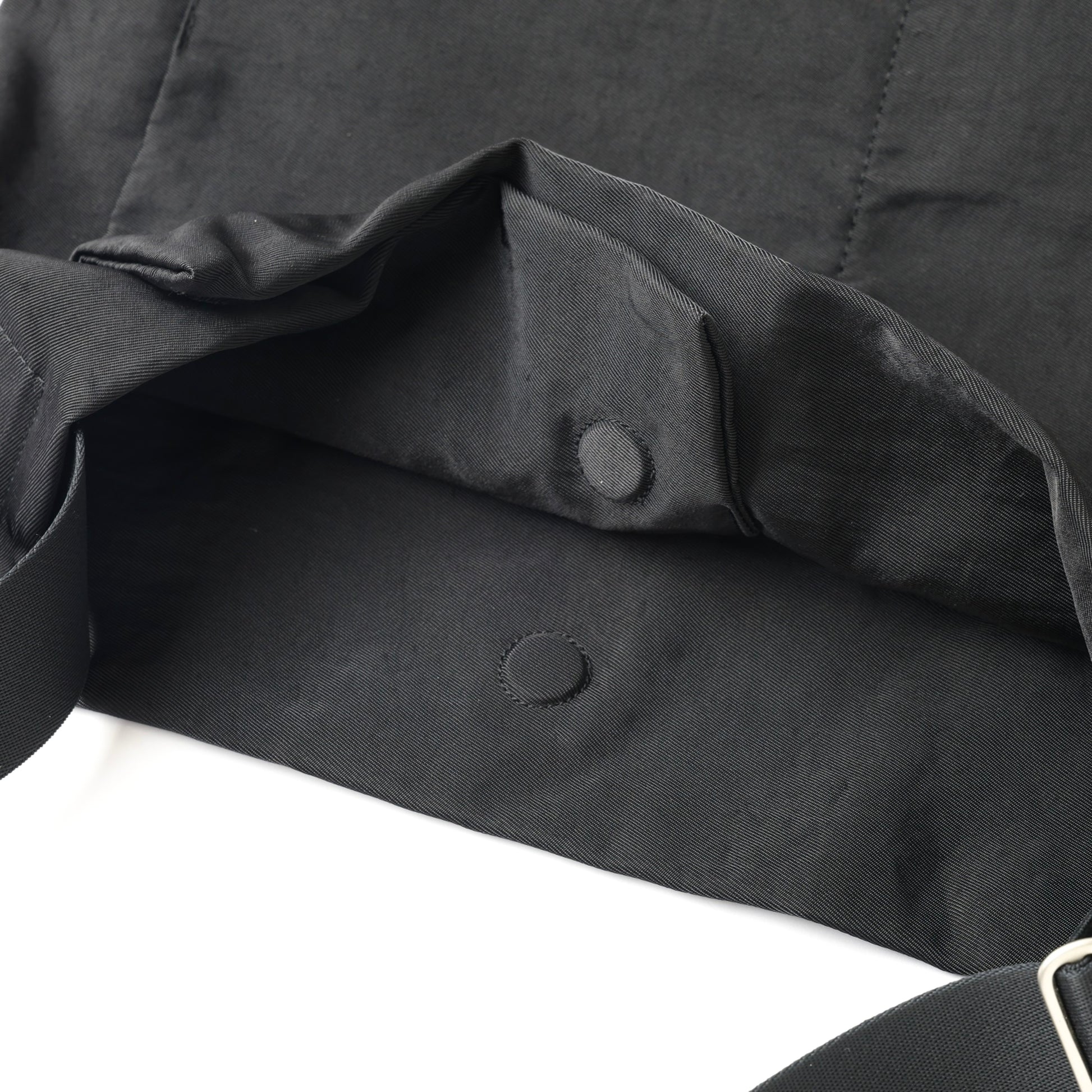 口元の生地を重ねた部分にマグネットを配し、ワンタッチでスムーズに開閉可能に。