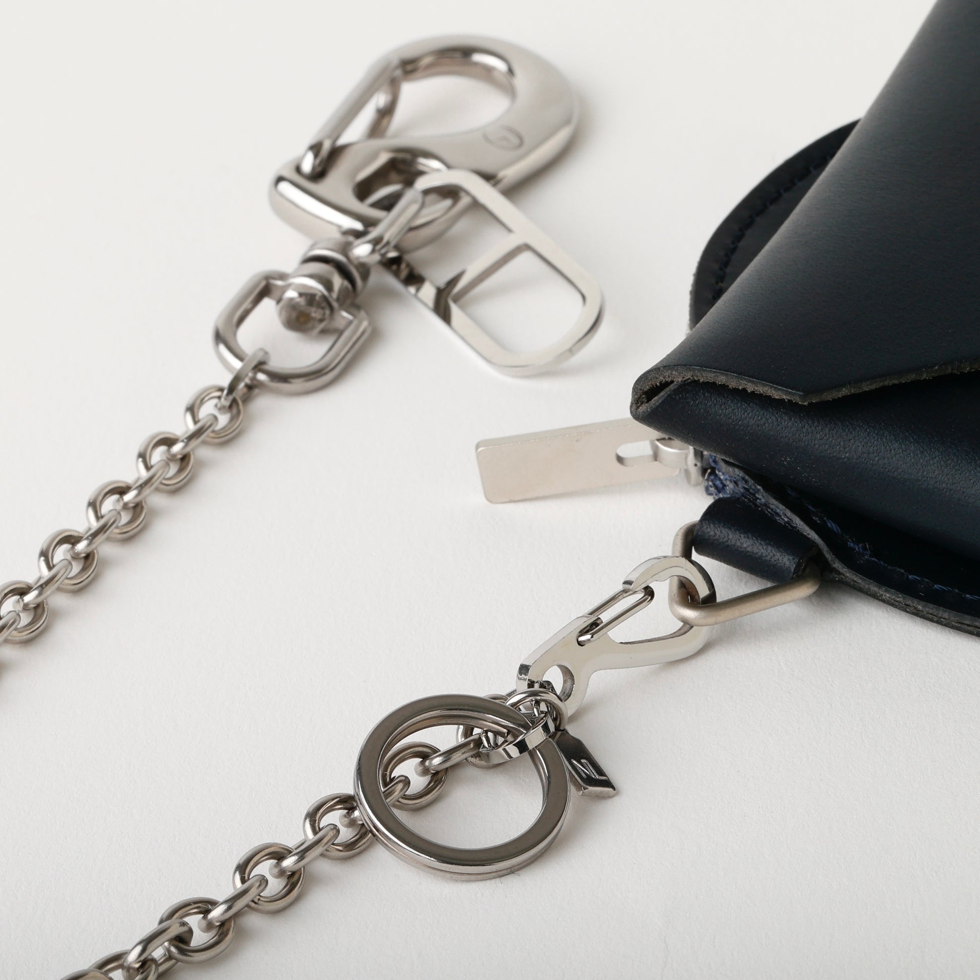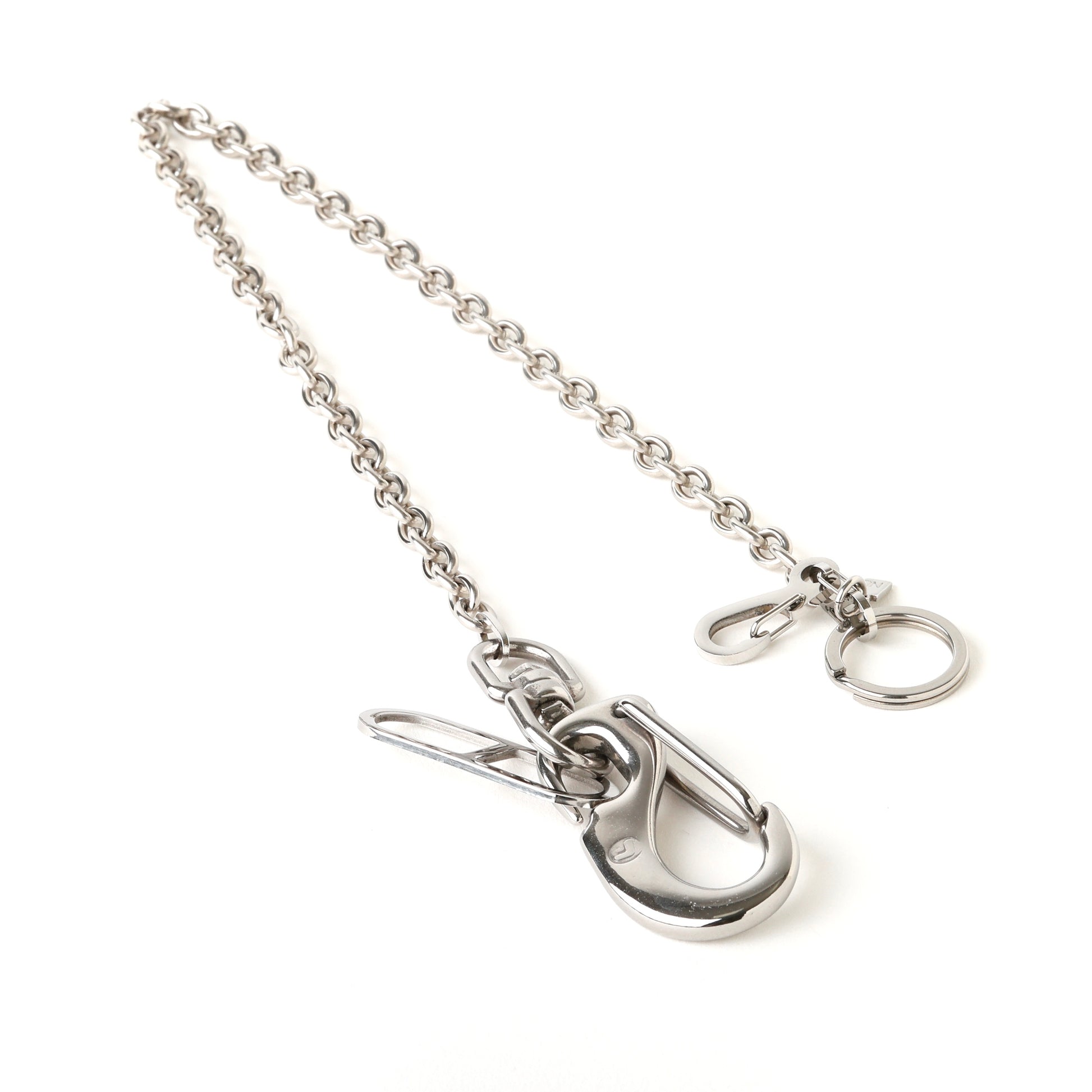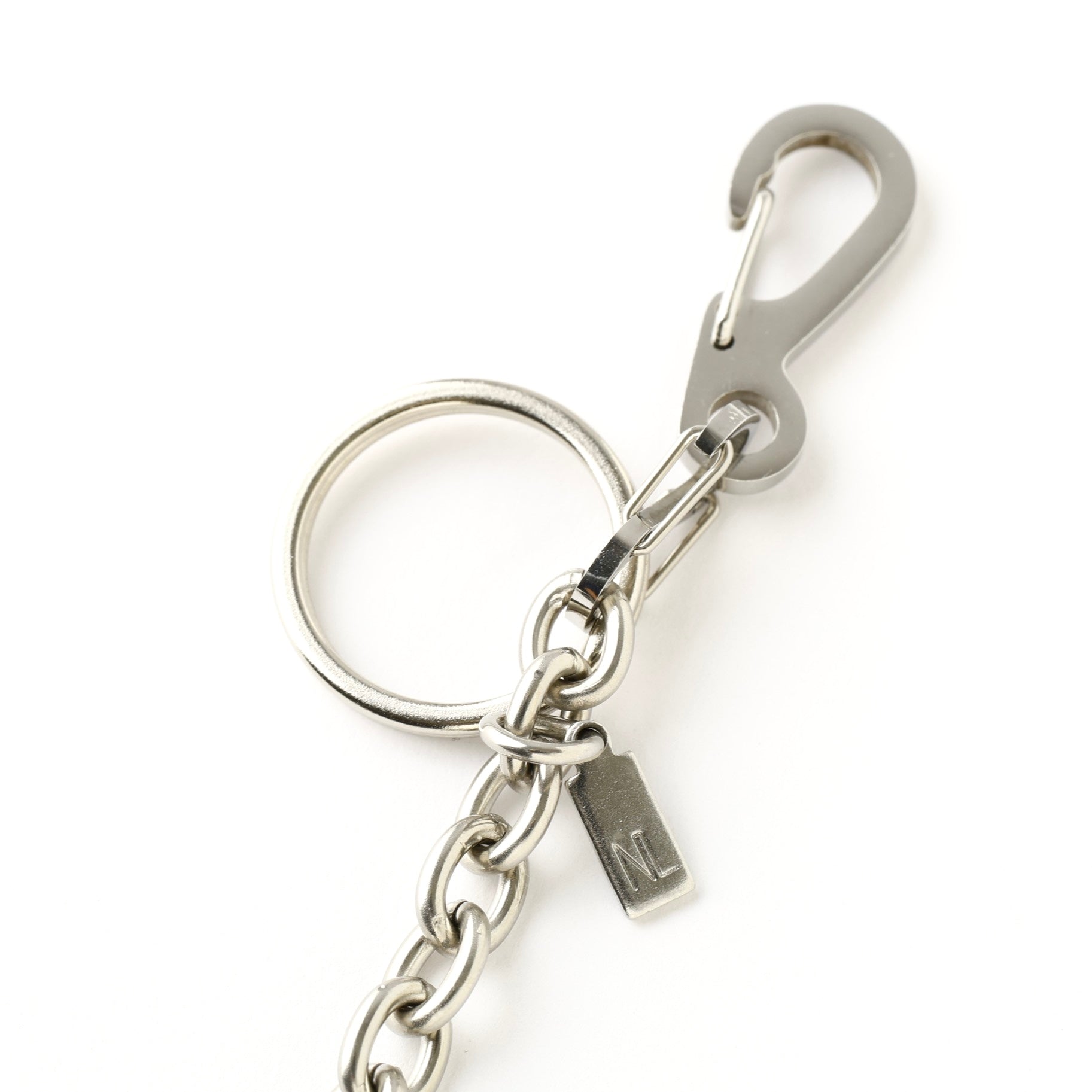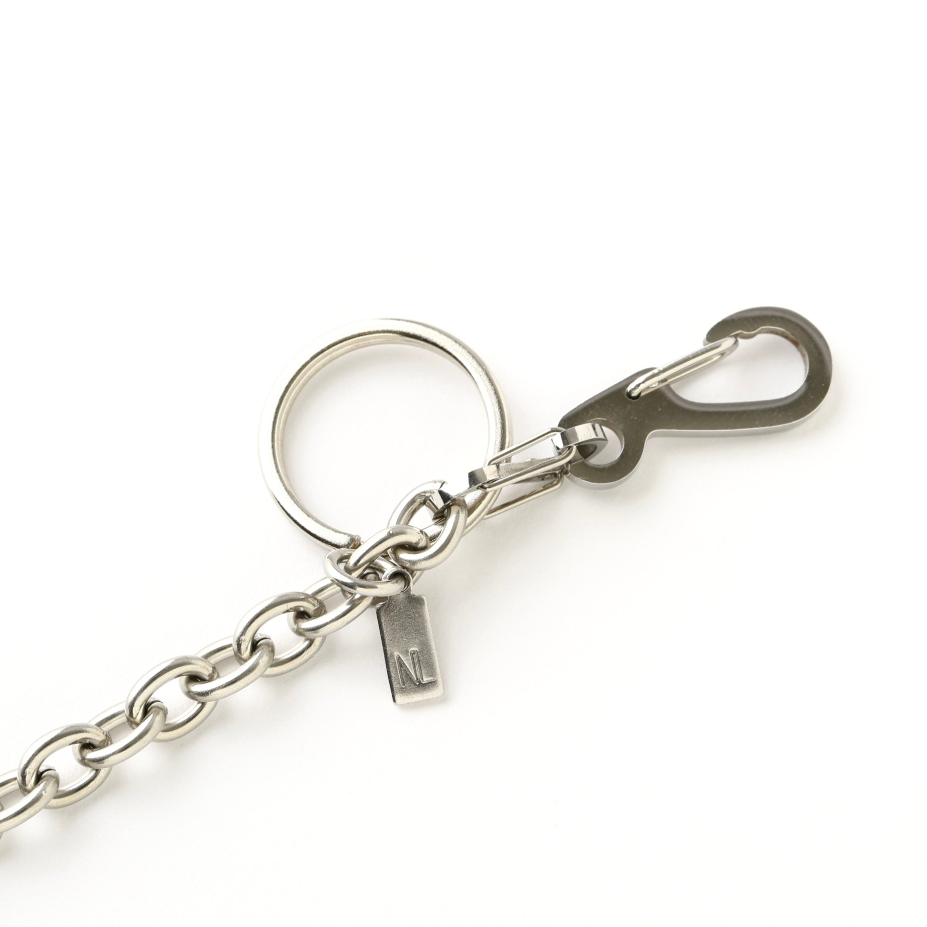 チェーンの先に小さなNL刻印のチャーム、二重カン、フックが各1つずつ付き、小さなフックにはNLウォレット等を付けることが可能です。
